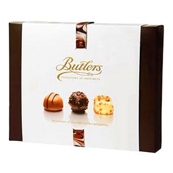 A gift wrapped selection of luxurious handmade truffles and pralines.