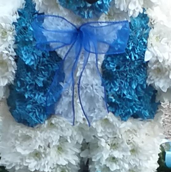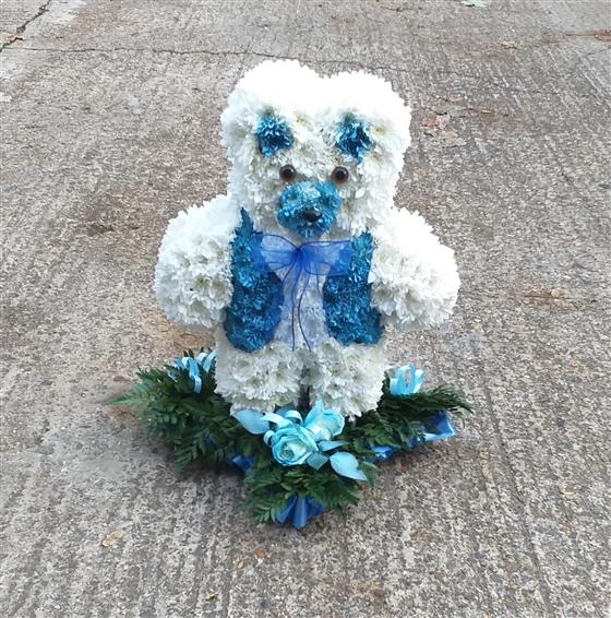 Approx 2FT Tall this adorable little chap is flowerd back and front creating a 3D Standing Teddy