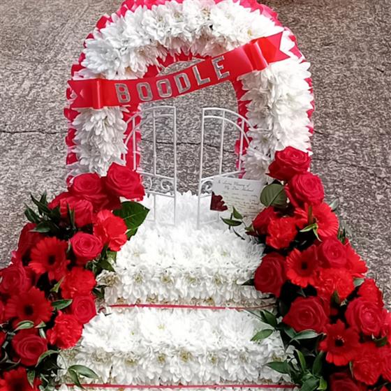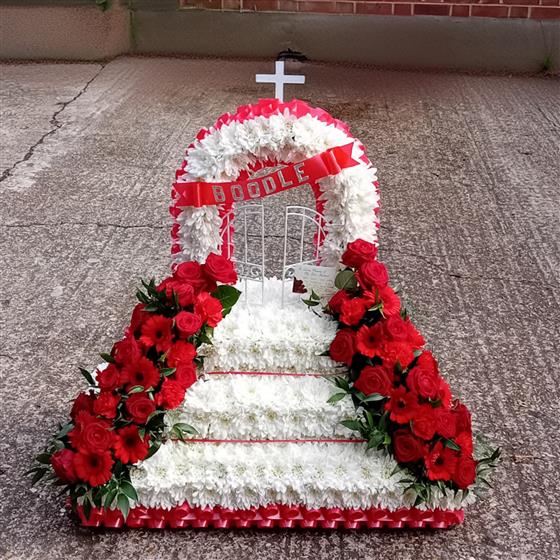 A stunning white based Gates of Heaven design with added steps, approximately 3ft tall,