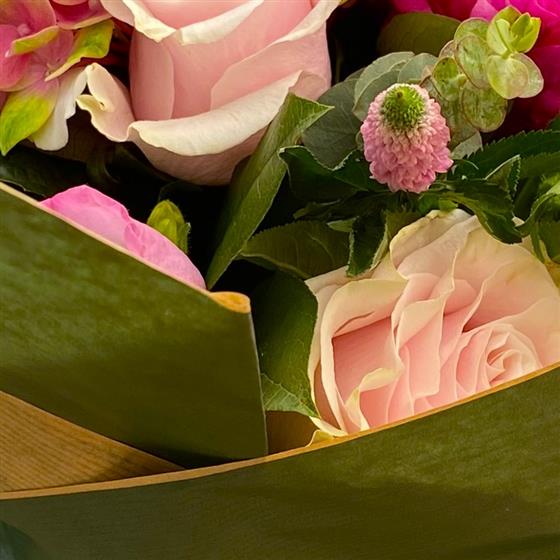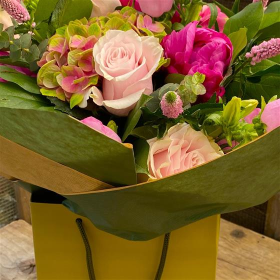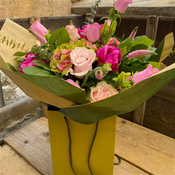 A delightful mixture of Pink garden Favourites for any occasion hand made and delivered in water