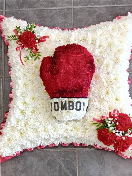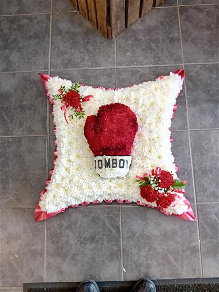 Boxing Glove on a 21inch Cushion Boxing Glove The perfect tribute for someone who had a love of boxing.