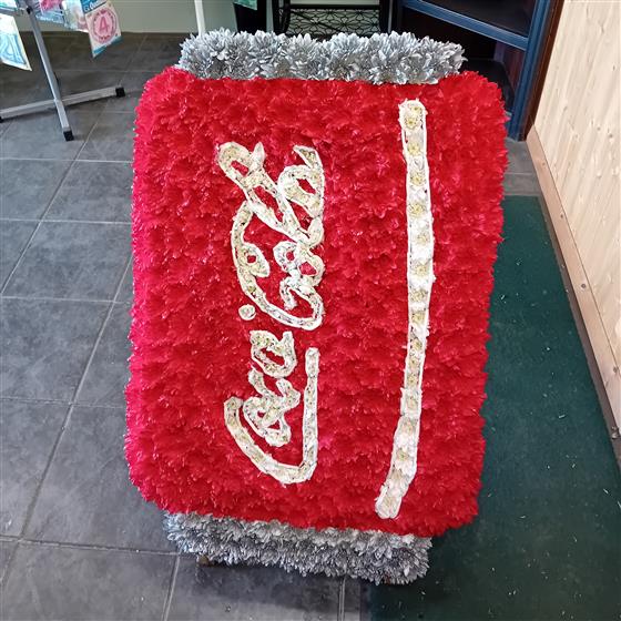 3ft Funeral Tribute of can of Coke on a bespoke wood stand