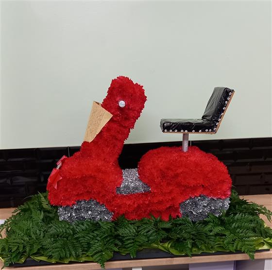 3Ft Bespoke Funeral Flower Tribute in shape of a mobility scooter
