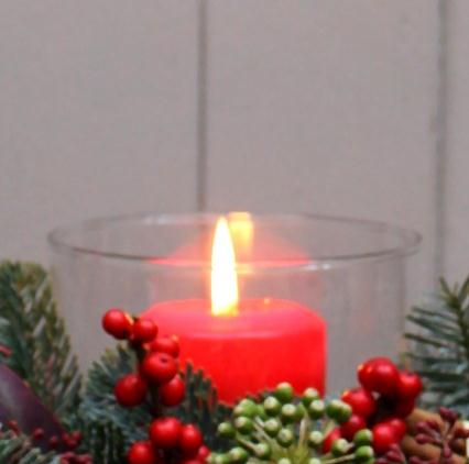 This classic seasonal arrangement of noble fir, berried holly, orange slices, cinnamon and brunia makes a traditional centrepiece for your Christmas table.