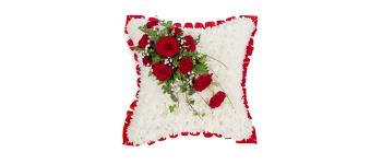 White Massed 43cm x 43cm Cushion with Red Rose Spray.