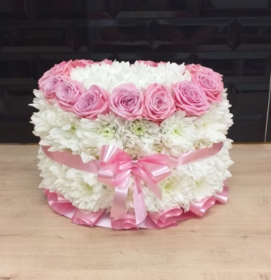 Floral Tribute of a Cake For a Funeral or Remembrance Wreath
